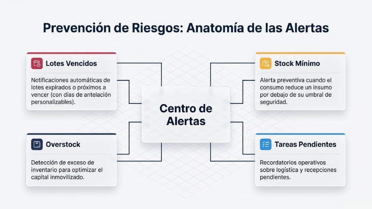 Alertas tempranas para evitar pérdidas por vencimientos.